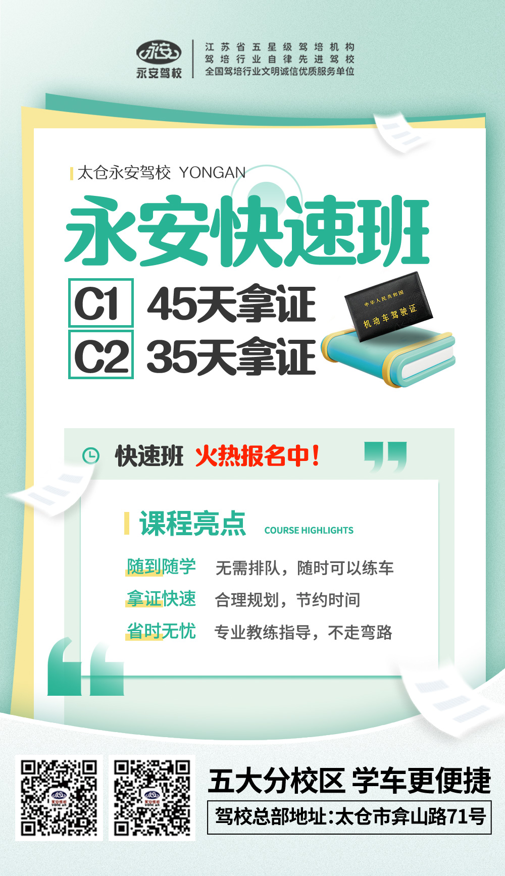趕緊來太(tai)倉(cang)永安(an)駕(jia)校(xiao)報名吧(ba)