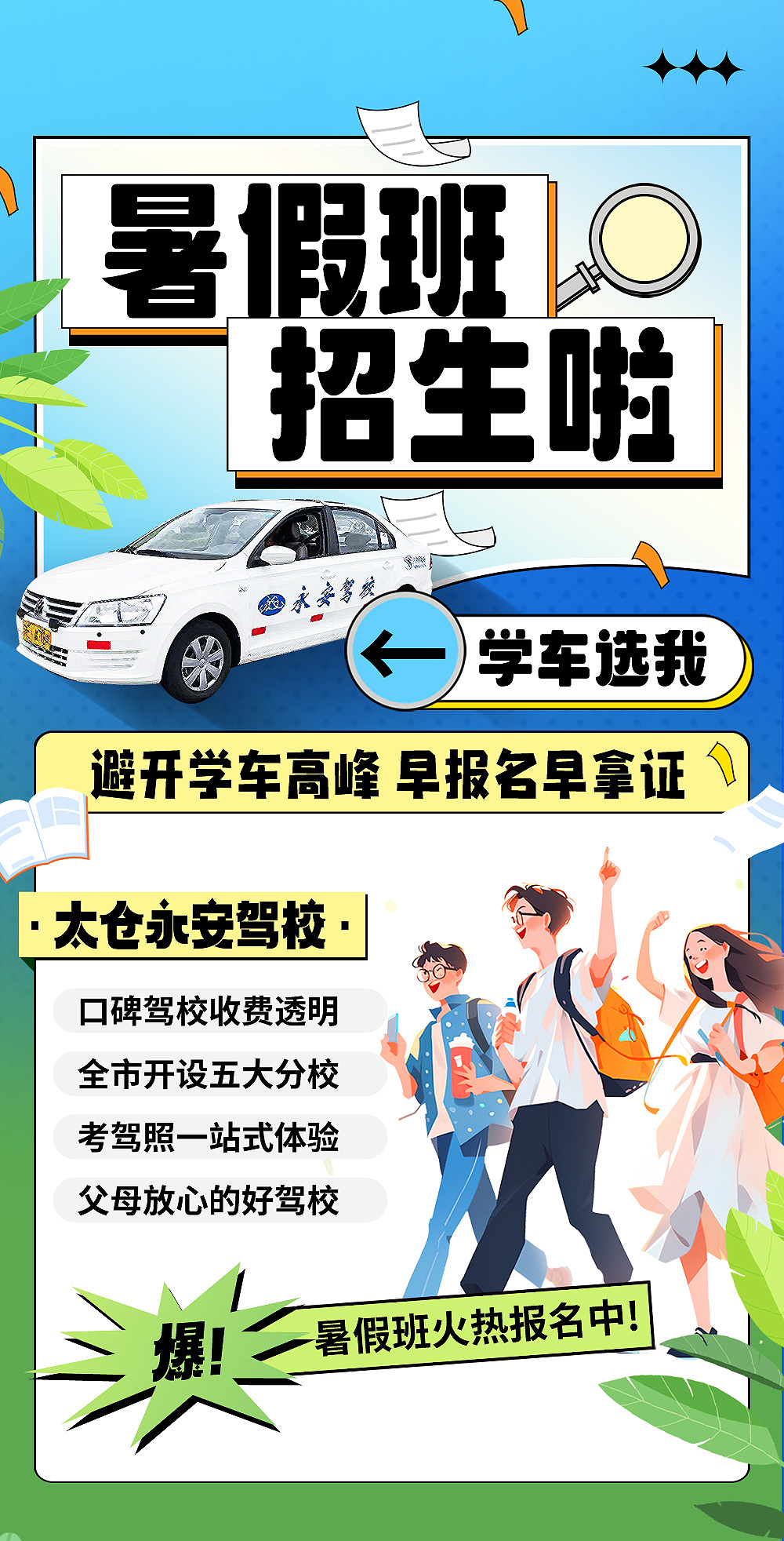 永(yong)安(an)暑假班||太(tai)倉(cang)永安(an)駕校(xiao)暑(shu)假班開(kai)始報名(ming)啦!提(ti)早(zao)報(bao)名(ming)搶佔先機(ji),挐(na)證(zheng)更(geng)快速(su)